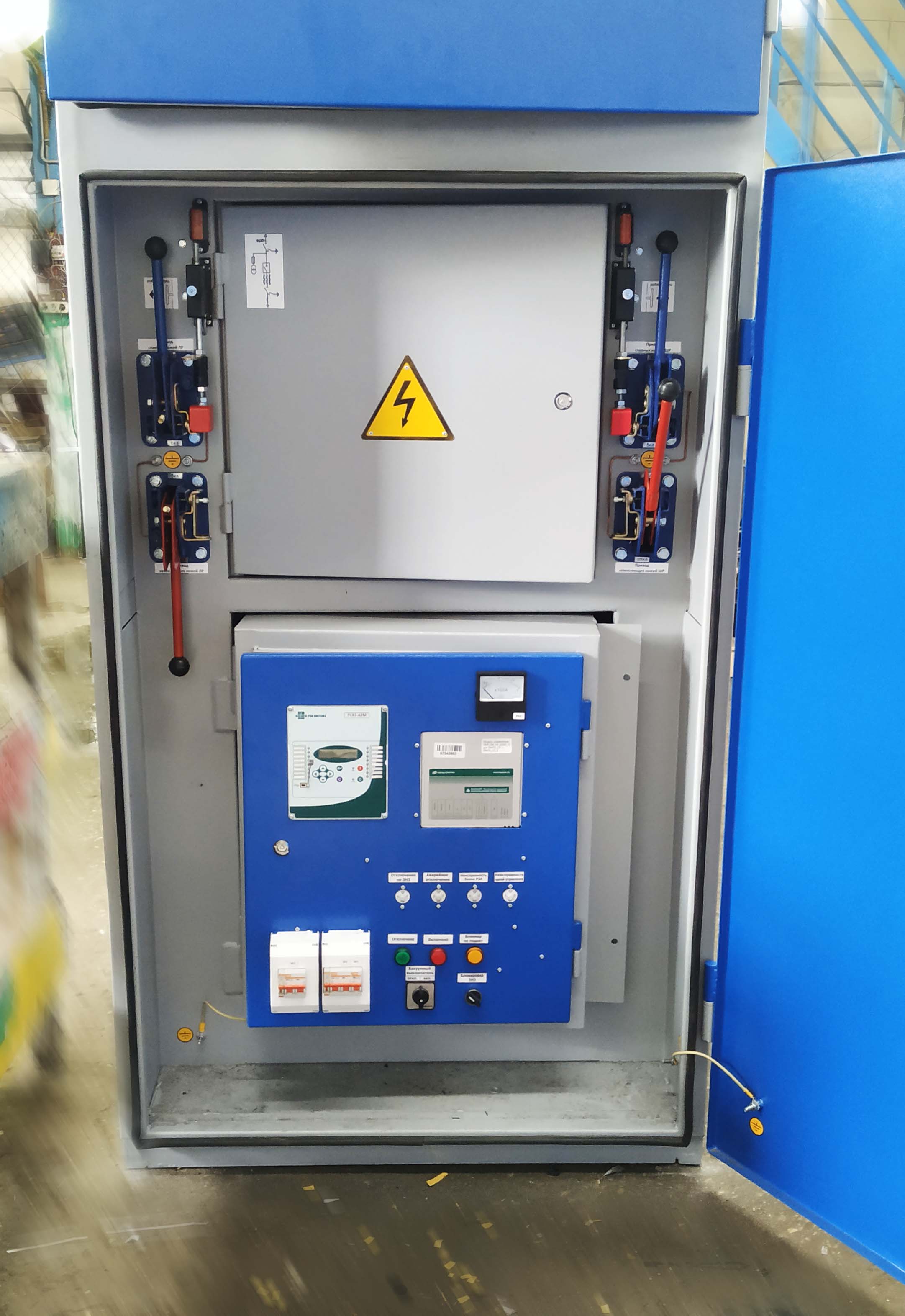 Комплектное распределительное устройство (КРУ) – комплексное устройство, предназначенное для распределения и контроля электроэнергии в электрической сети. Оно состоит из высоковольтного выключателя, аппарата защиты и управления, трансформатора напряжения, магистральной линии подачи и других элементов.